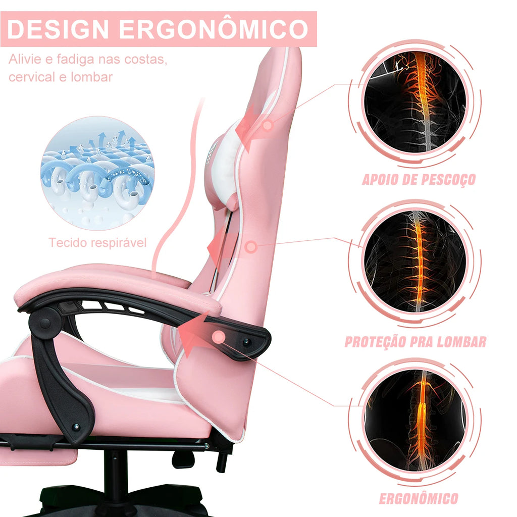 Transforme seu espaço de trabalho ou jogo com a Cadeira Gamer Ergonômica Python Fly Rosa.